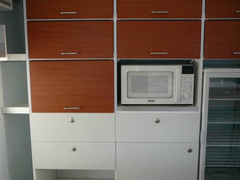 Il nous a également demandé des espaces dédiés pour installer un réfrigérateur et un micro onde, ainsi que de nombreux tiroirs et casiers pour stocker les autres produits qu'il propose à la vente et pour le rangement de ses effets personnels.