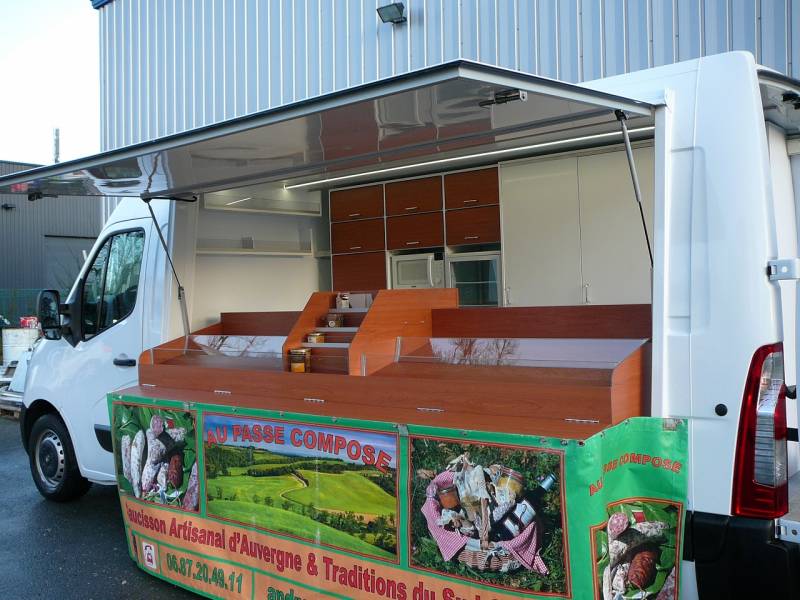 Ce Fourgon Renault Master s'est transformé en camion magasin spécialisé en Charcuterie et salaison s'installant sur les marchés et autres salons / expositions partout en france.